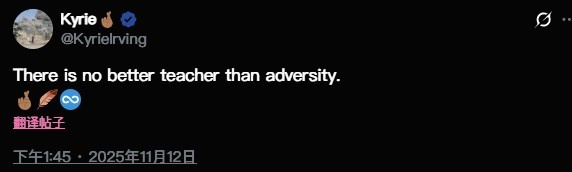 独行侠球星欧文更推道:“逆境是最好的老师。”